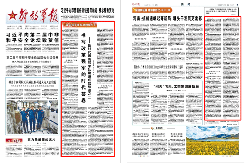 大潮奔涌,激流勇進(jìn)。我軍組織架構(gòu)實(shí)現(xiàn)歷史性變革,中國特色精兵之路邁出歷史性步伐,中國特色社會主義軍事政策制度體系日趨完備……今天,浴火重生的人民軍隊(duì),正以突飛猛進(jìn)之勢向著世界一流軍隊(duì)的目標(biāo)加速邁進(jìn)。