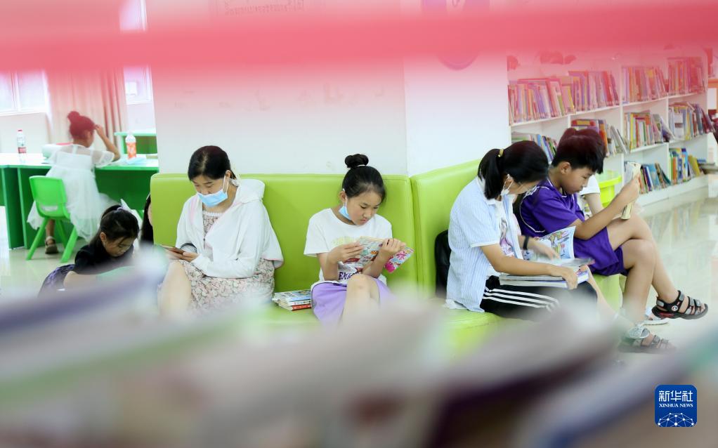 8月3日,在河南省洛陽(yáng)市汝陽(yáng)縣圖書館少兒閱讀室,學(xué)生們?cè)陂喿x書籍。新華社發(fā)(康紅軍 攝)