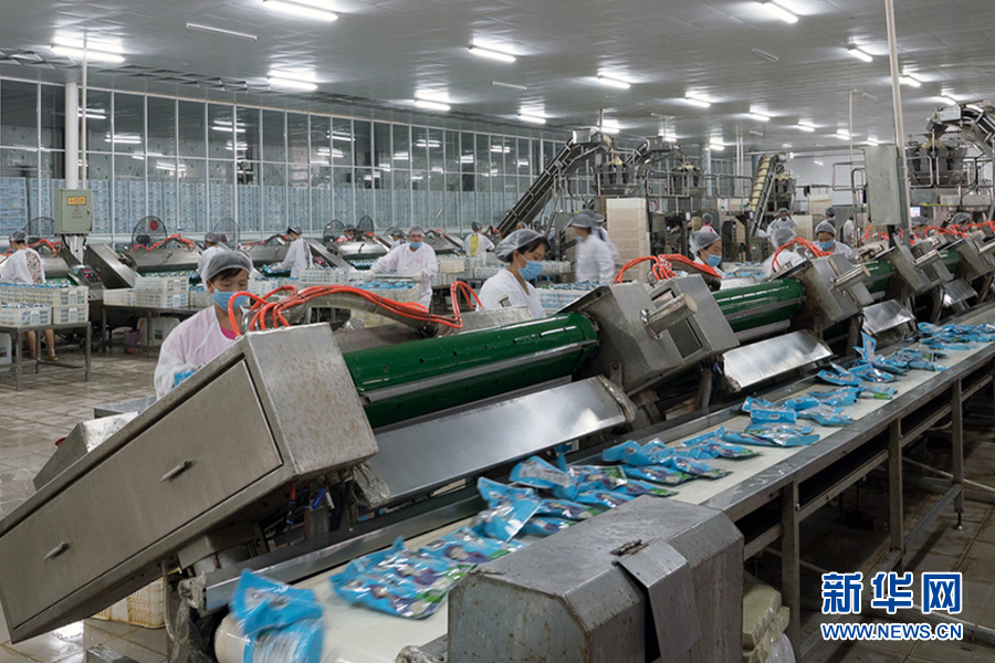 圖為湖北華貴食品有限公司泡藕帶加工生產車間。新華網發(fā)(受訪者提供)