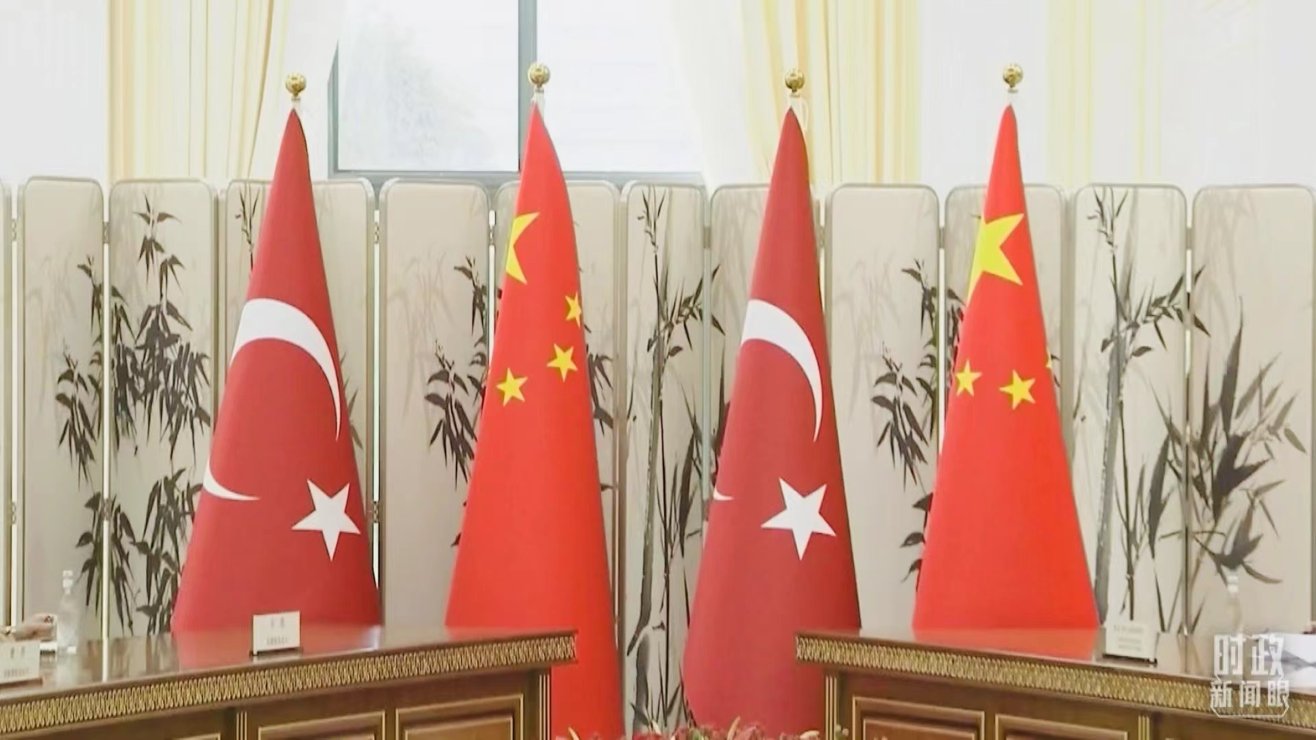 △這是小范圍會(huì)談現(xiàn)場(chǎng)的中方桌簽。(總臺(tái)央視記者黃京輝拍攝)