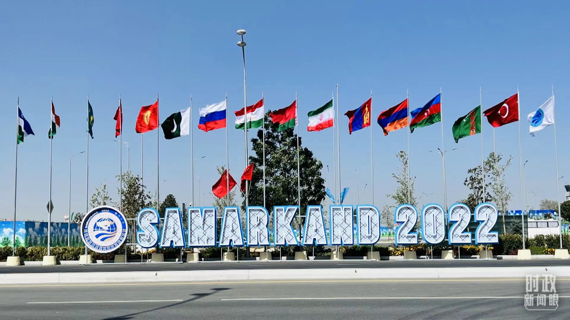 △撒馬爾罕,機(jī)場(chǎng)附近的峰會(huì)標(biāo)識(shí)。(總臺(tái)央視記者楊新禹拍攝)