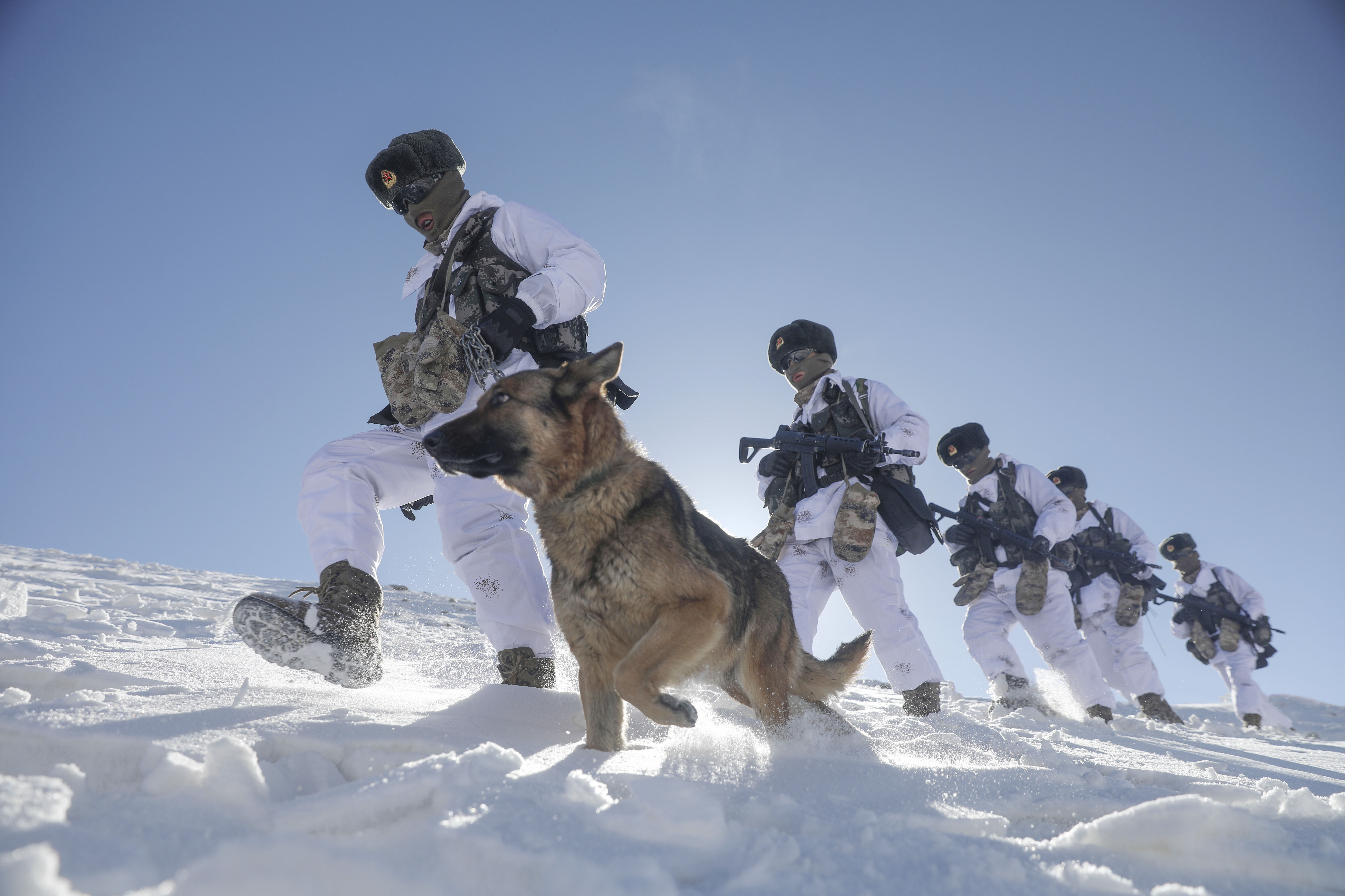 駐守帕米爾高原的新疆喀什軍分區(qū)某邊防團(tuán)托克滿蘇邊防連官兵按計(jì)劃對(duì)海拔5100米的山口實(shí)施例行巡邏(2021年2月11日攝)。新華社發(fā)(姬文志 攝)