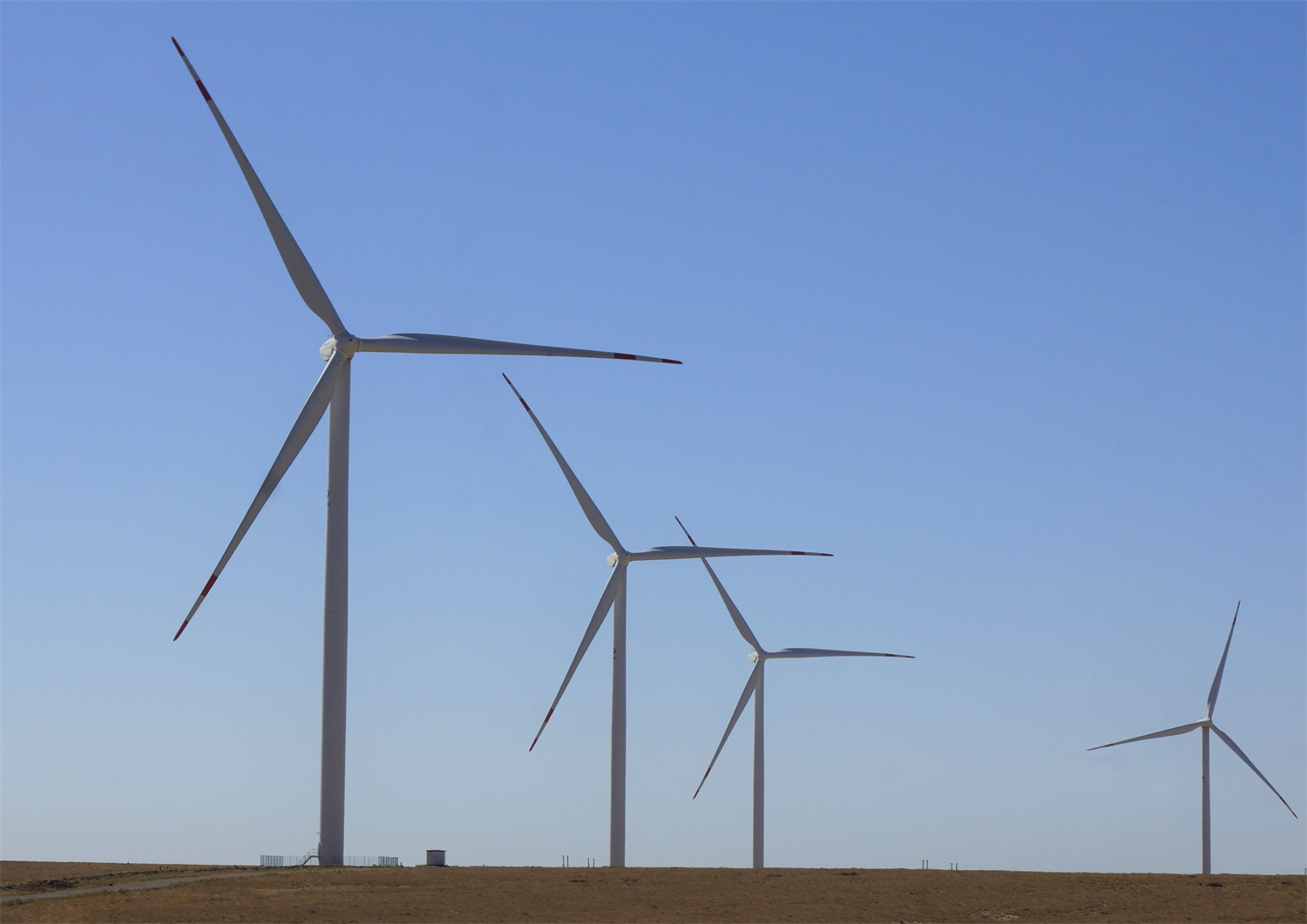 這是2022年9月13日拍攝的哈薩克斯坦札納塔斯風(fēng)電場(chǎng)風(fēng)機(jī)。新華社發(fā)(德米特里·瓦西連科攝)