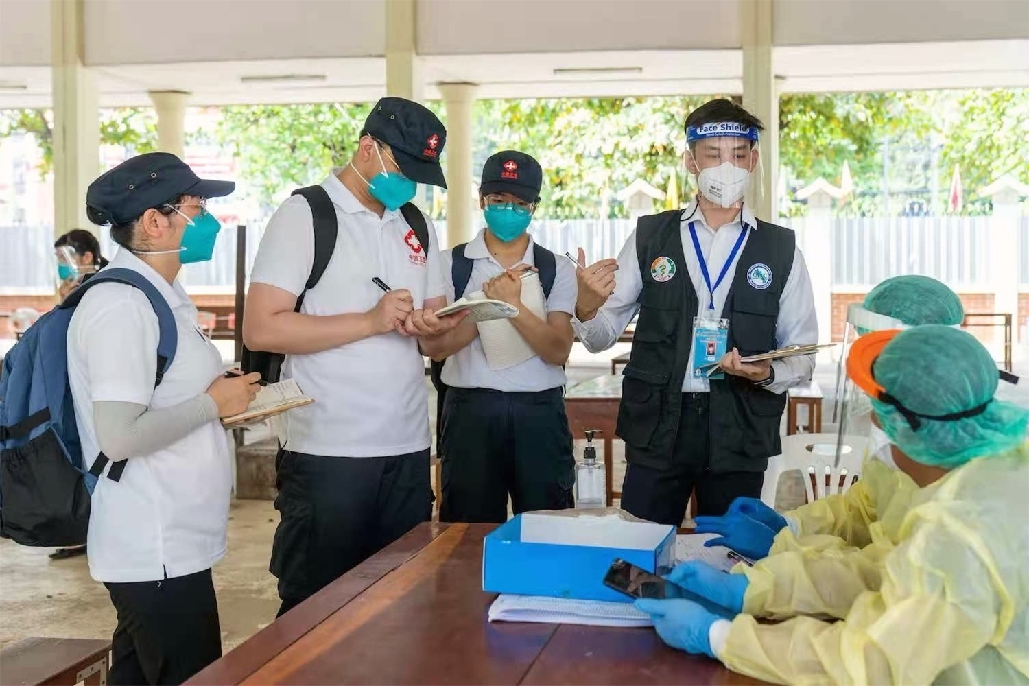 2021年5月7日,中國(guó)政府醫(yī)療專家組在老撾首都萬(wàn)象考察一個(gè)新冠病毒采樣點(diǎn),了解采樣流程、信息采集、密切接觸者判定標(biāo)準(zhǔn)和環(huán)境消毒等情況。新華社發(fā)(中國(guó)政府醫(yī)療專家組供圖)