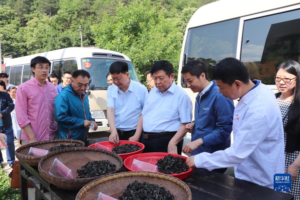 李玉在陜西省柞水縣調(diào)研當(dāng)?shù)睾谀径a(chǎn)和品種選育情況(資料照片)。 新華社發(fā)
