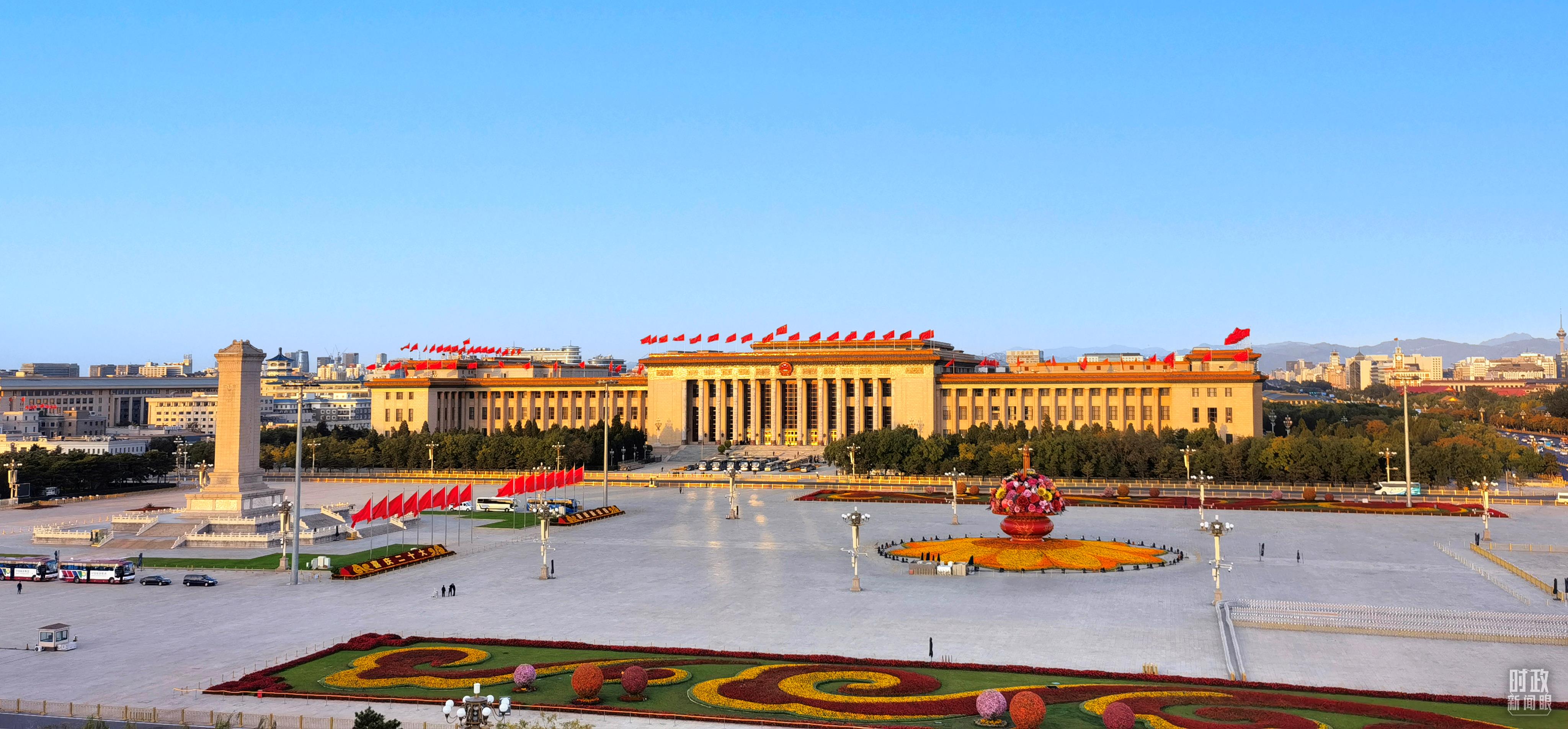 △16日清晨的天安門廣場。(總臺央視記者范學(xué)禹拍攝)