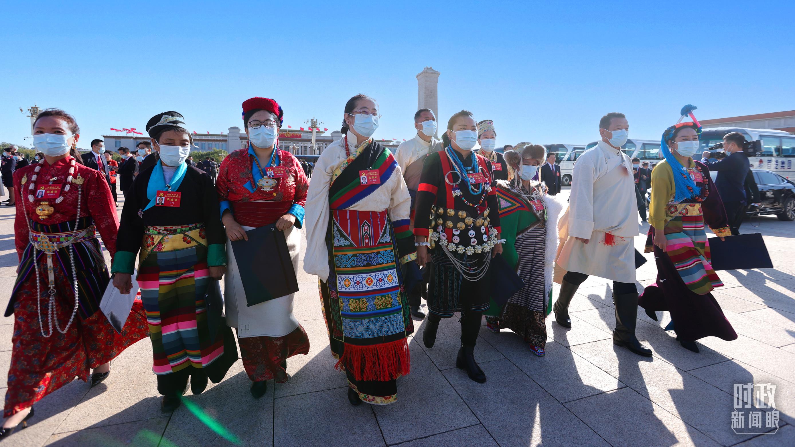 △正在步入會場的西藏代表團(tuán)代表,左二是卓嘎,去年她獲頒“七一勛章”。(總臺央視記者魏幫軍拍攝)