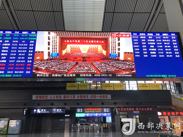 西部決策網(wǎng)訊(記者帥華鋒 杜杰 通訊員 金帥群 黃貴彬) 10月16日上午10時,舉世矚目的中國共產(chǎn)黨第二十次全國代表大會在北京人民大會堂隆重開幕,在甘寧兩?。▍^(qū))的千里鐵道線上處處洋溢著喜慶的氛圍。蘭州鐵路局廣大干部職工懷著無比激動的心情,通過多種形式收聽收看大會直播盛況。同時,面向旅客在蘭州、蘭州西、武威等車站,利用候車室大屏播放黨的二十大開幕式,過往旅客候車間隙紛紛駐足觀看,以最隆重的儀式迎接大會勝利召開。