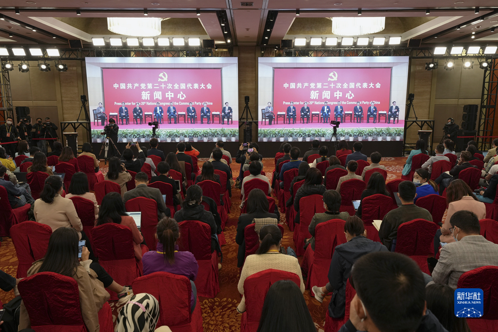 10月19日,中國(guó)共產(chǎn)黨第二十次全國(guó)代表大會(huì)新聞中心舉行集體采訪。山東、河南、湖北、湖南、廣東、廣西、海南代表團(tuán)新聞發(fā)言人出席,介紹代表團(tuán)學(xué)習(xí)討論二十大報(bào)告情況,并回答記者提問。新華社記者 張玉薇 攝