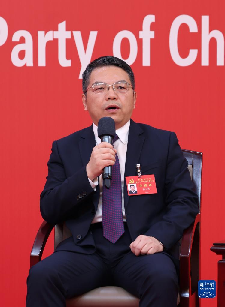10月19日,中國(guó)共產(chǎn)黨第二十次全國(guó)代表大會(huì)新聞中心舉行集體采訪。山東、河南、湖北、湖南、廣東、廣西、海南代表團(tuán)新聞發(fā)言人出席,介紹代表團(tuán)學(xué)習(xí)討論二十大報(bào)告情況,并回答記者提問。新華社記者 陳建力 攝