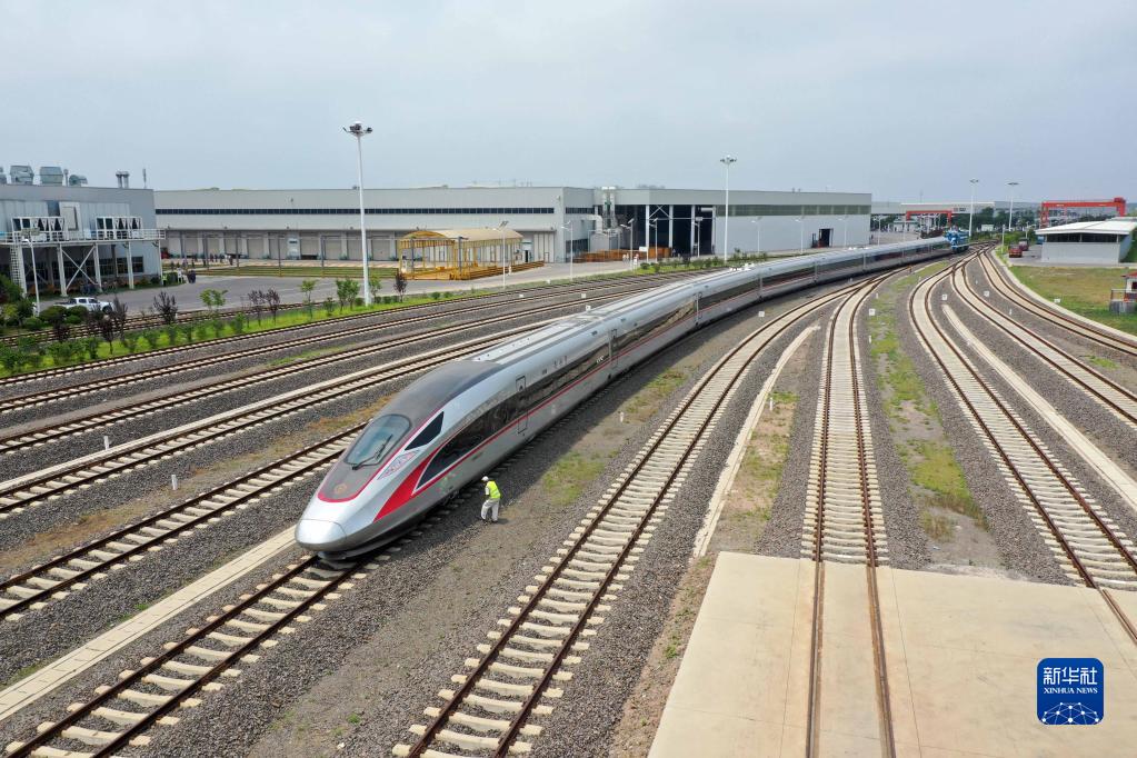 在位于山東青島的中車四方股份公司,一輛復興號列車正在出廠(2021年7月1日攝)。新華社發(fā)