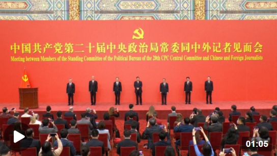 獨家視頻丨中國共產黨第二十屆中央政治局常委同中外記者見面