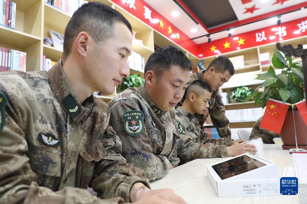 中共中央總書(shū)記、國(guó)家主席、中央軍委主席習(xí)近平24日下午出席軍隊(duì)領(lǐng)導(dǎo)干部會(huì)議時(shí)發(fā)表的重要講話(huà),在解放軍和武警部隊(duì)引起強(qiáng)烈反響。這是新疆軍區(qū)奧爾托蘇邊防連官兵在圖書(shū)室認(rèn)真學(xué)習(xí)習(xí)主席重要講話(huà)(10月25日攝)。新華社發(fā)(劉南松 攝)