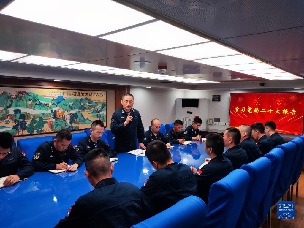 中共中央總書(shū)記、國(guó)家主席、中央軍委主席習(xí)近平24日下午出席軍隊(duì)領(lǐng)導(dǎo)干部會(huì)議時(shí)發(fā)表的重要講話(huà),在解放軍和武警部隊(duì)引起強(qiáng)烈反響。這是東部戰(zhàn)區(qū)海軍護(hù)衛(wèi)艦支隊(duì)迅速組織官兵學(xué)習(xí)習(xí)主席重要講話(huà)(10月25日攝)。新華社發(fā)(劉祎瑋 攝)