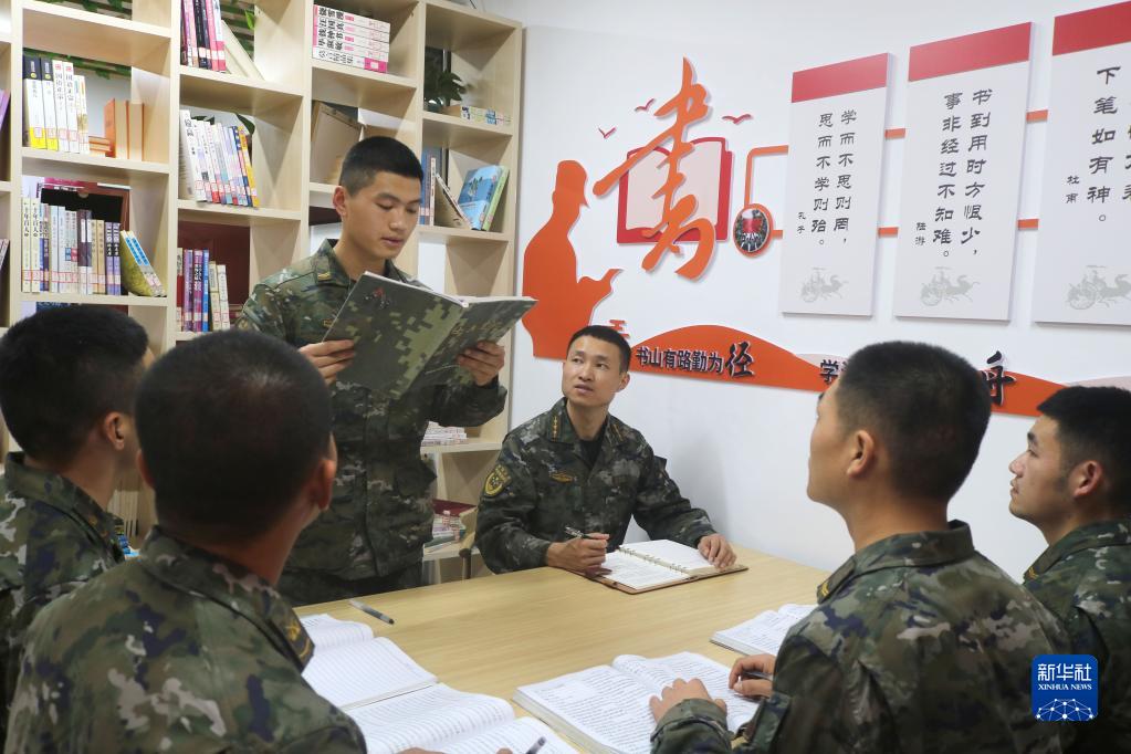 中共中央總書(shū)記、國(guó)家主席、中央軍委主席習(xí)近平24日下午出席軍隊(duì)領(lǐng)導(dǎo)干部會(huì)議時(shí)發(fā)表的重要講話(huà),在解放軍和武警部隊(duì)引起強(qiáng)烈反響。這是南部戰(zhàn)區(qū)陸軍第74集團(tuán)軍某合成旅“大渡河連”組織官兵認(rèn)真學(xué)習(xí)習(xí)主席重要講話(huà)(10月25日攝)。新華社發(fā)(薛健 攝)