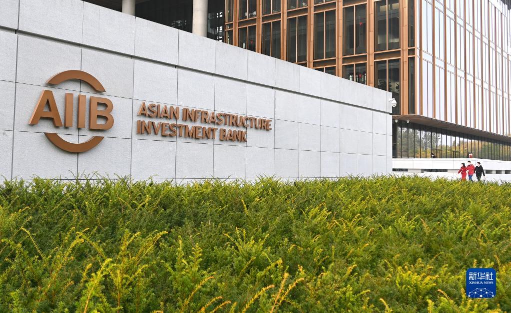 這是亞洲基礎(chǔ)設(shè)施投資銀行(亞投行)標志(2021年10月25日攝)。新華社記者 李賀 攝