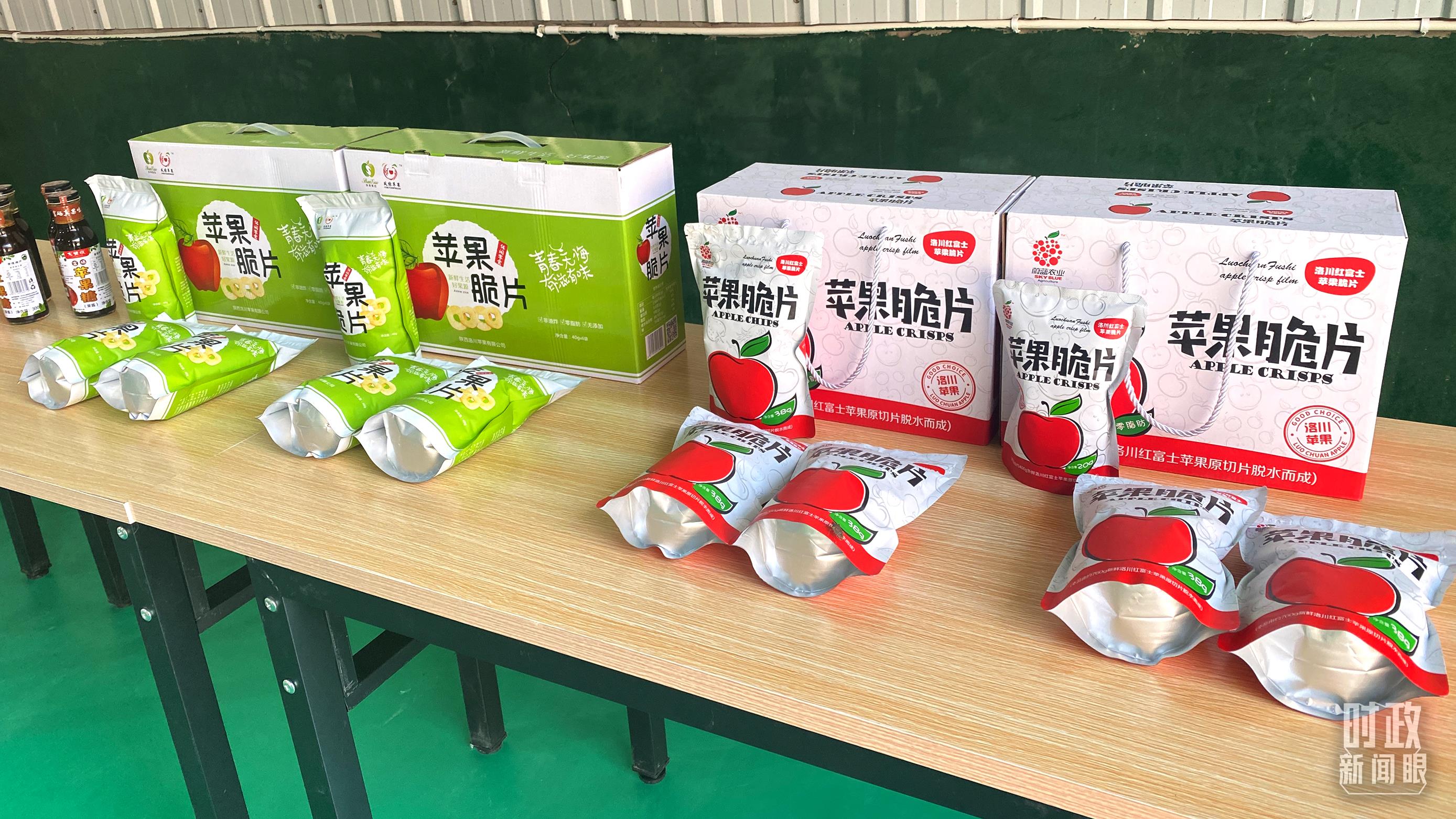 △南溝村展示的蘋果深加工產(chǎn)品。(總臺(tái)央視記者李輝拍攝)