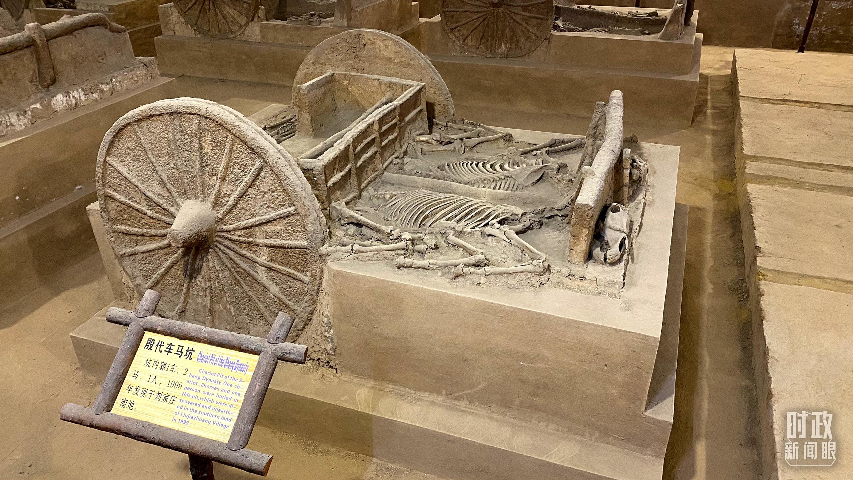 △殷代車馬坑,坑內(nèi)葬1車、2馬、1人,1999年發(fā)現(xiàn)于劉家莊南地。(總臺(tái)央視記者王哈男拍攝)