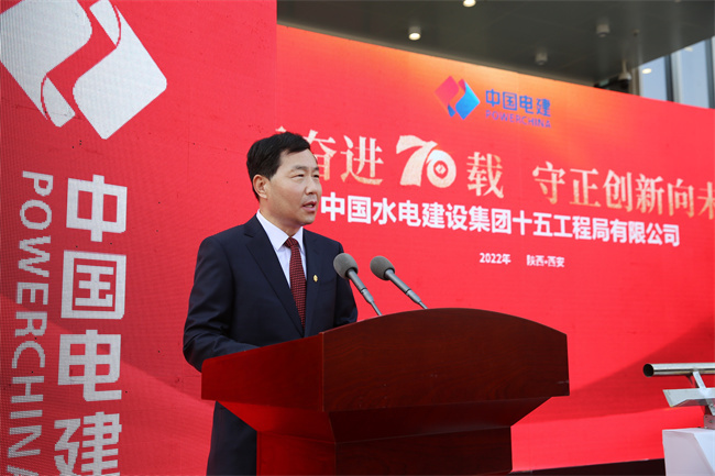 水電十五局黨委書記、董事長(zhǎng)梁向峰發(fā)表致辭。他指出,70年來水電十五局緊緊跟隨共和國(guó)的腳步,以自帶風(fēng)雷的氣概與共和國(guó)一起成長(zhǎng),數(shù)代十五局人歷經(jīng)坎坷卻勇毅向前,在祖國(guó)大地建起了一項(xiàng)項(xiàng)雄美的工程!特別是黨的十八大以來的10年,著力推動(dòng)企業(yè)高質(zhì)量發(fā)展,大力提升內(nèi)生能力,大力擴(kuò)展業(yè)務(wù)布局,在區(qū)域及領(lǐng)域均形成大土木的業(yè)務(wù)結(jié)構(gòu),在產(chǎn)業(yè)鏈上不斷加快投資業(yè)務(wù)、總承包業(yè)務(wù)、融資加總承包業(yè)務(wù)等商業(yè)模式的構(gòu)建,國(guó)際業(yè)務(wù)遍布全球多個(gè)國(guó)家和地區(qū),總量占比全局的四分之一。以延安引黃、灃河治理,易俗社改造、興慶公園改造等項(xiàng)目為代表的新名片使十五局人更加自信。黨的二十大剛剛閉幕,中國(guó)的歷史翻開了新的一頁,特殊的日子,迎來建局70周年,同時(shí)入駐新的辦公大樓,在習(xí)近平新時(shí)代中國(guó)特色社會(huì)主義思想指引下,十五局人將在新時(shí)代的浪潮中倍加努力,再創(chuàng)輝煌!