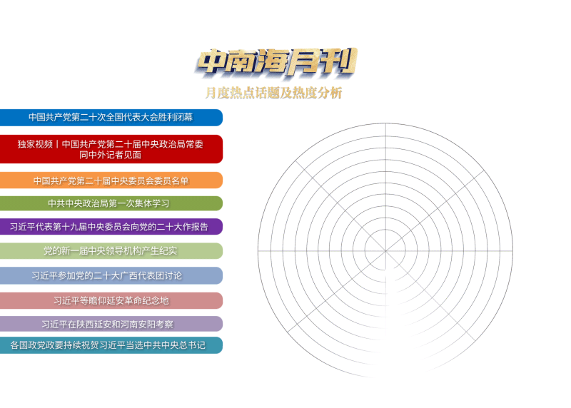 代表第十九屆中央委員會(huì)向黨的二十大作報(bào)告、參加黨的二十大廣西代表團(tuán)討論、同中外記者見(jiàn)面、主持新一屆中央政治局第一次集體學(xué)習(xí)、帶領(lǐng)新一屆中央政治局常委赴陜西延安瞻仰延安革命紀(jì)念地、同黨的二十大后首位應(yīng)邀訪華的外國(guó)領(lǐng)導(dǎo)人——越共中央總書(shū)記阮富仲舉行會(huì)談……十月,習(xí)近平總書(shū)記的日程一如既往,緊湊又繁忙。