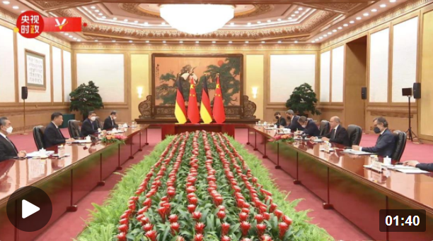朔爾茨說:“值此德中建交50周年之際,我們相聚在這里。我很高興在這里與您對話。我還記得在擔(dān)任漢堡市長時(shí)同您的交流。我在擔(dān)任財(cái)政部長時(shí)也到訪過北京。我們在這里對雙方關(guān)心的所有問題進(jìn)行深入的交流,是非常好的一件事,涉及雙邊關(guān)系,以及進(jìn)一步推動(dòng)雙邊經(jīng)貿(mào)關(guān)系發(fā)展。”