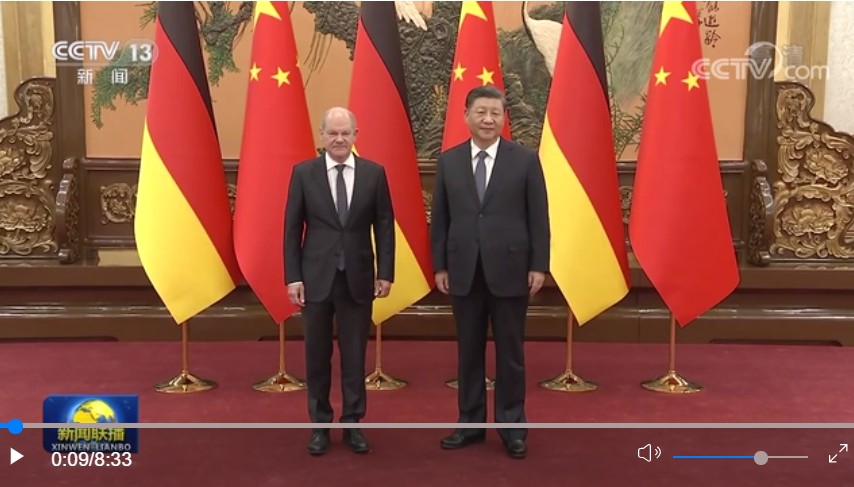 習近平指出,你是中共二十大召開后首位來訪的歐洲領導人,這也是你就任以來首次訪華。相信訪問將增進雙方了解和互信,深化各領域務實合作,為下階段中德關系發(fā)展做好謀劃。