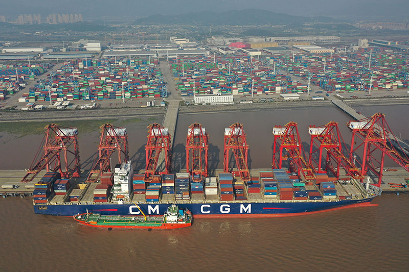 △貨輪停靠在浙江寧波舟山港梅東碼頭(12月13日攝)。