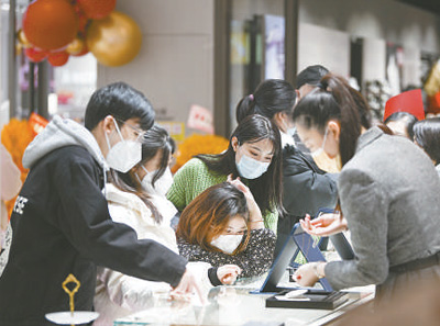 1月1日,消費(fèi)者在天津金茂匯商場內(nèi)選購商品。新華社記者 孫凡越攝