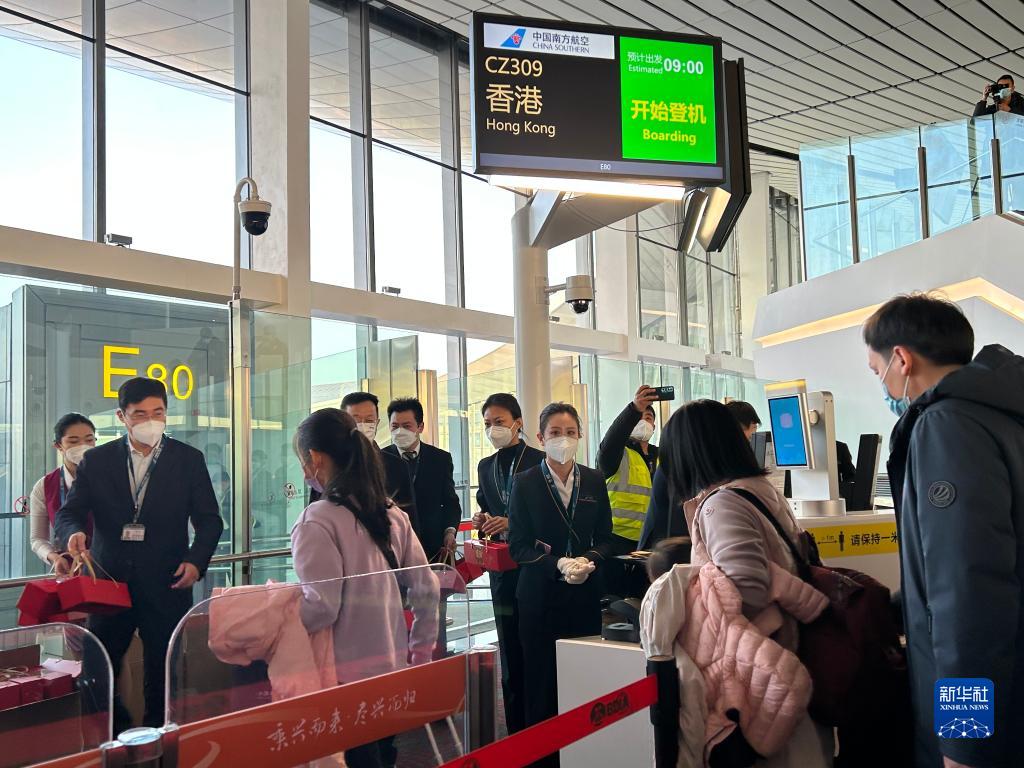 新華社北京1月17日電(記者羅鑫、吉寧)17日上午9時許,前往香港的CZ309航班搭乘100多名乘客騰空而起,中國“新國門”北京大興國際機場“暫停”近三年的國際及地區(qū)客運航班“重啟”,國際及港澳臺地區(qū)客運航線正式恢復(fù)。
