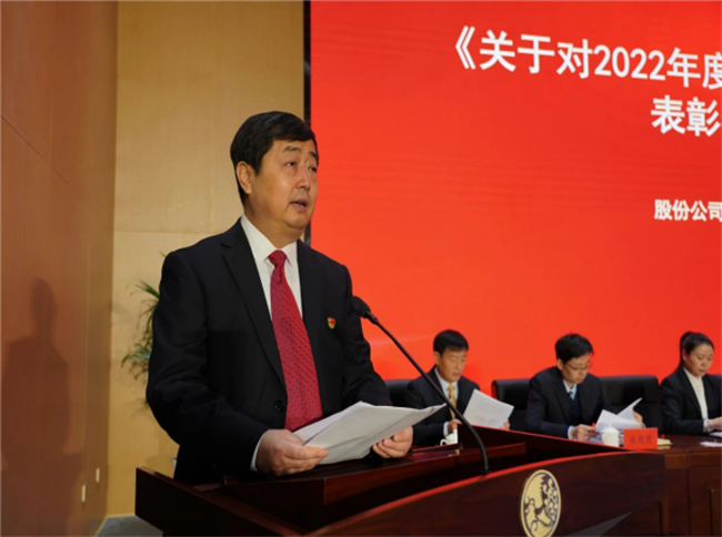 西鳳股份公司副董事長、總經(jīng)理賈智勇宣讀《關于對2022年度先進單位、先進個人進行表彰獎勵的決定》