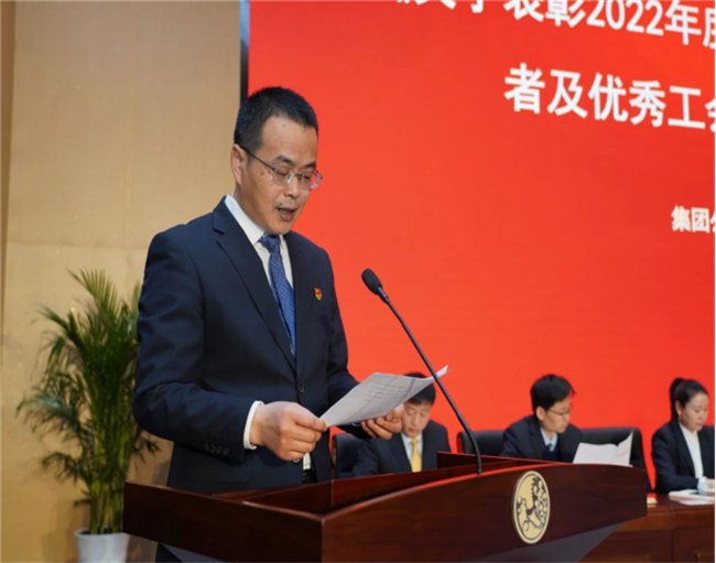 西鳳集團公司副總裁楊會軍宣讀《關于表彰2022年度先進分會和優(yōu)秀工會積極分子的決定》