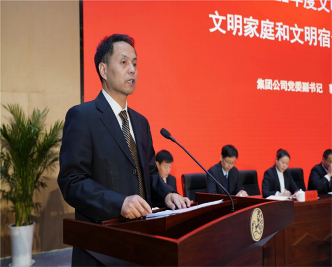 西鳳集團公司黨委副書記郭拴新宣讀《關于命名表彰公司2022年度文明單位、文明班組、文明家庭和文明宿舍的決定》