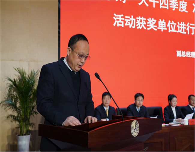 西鳳股份公司副總經(jīng)理師紅勤宣讀《關于對“大干四季度 沖刺全年目標任務”競賽活動獲獎單位進行表彰獎勵的決定》