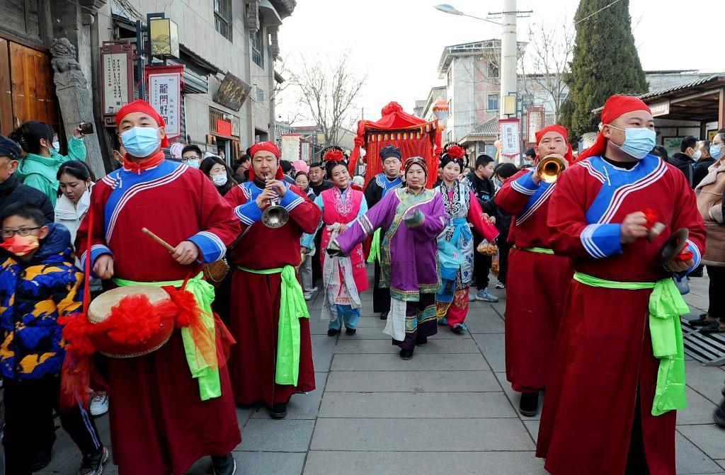 1月23日大年初二12:06,首批乘坐“韓城過(guò)大年”定制列車的400多名游客抵達(dá)韓城,走進(jìn)史圣故里,感受古城悠久的文化底蘊(yùn)和不一樣的韓城年味。游客們沿著新開(kāi)辟的“古城環(huán)線游”線路,依次游覽古城三廟、民俗博物館,欣賞非遺展覽,在古城美食街品嘗當(dāng)?shù)孛朗场P凶咴诠懦?,社火、秧歌、踩高蹺…… 各色非遺表演精彩紛呈,游客們紛紛拿出手機(jī)留下精彩的瞬間,抱起孩子共享這難得的歡樂(lè)時(shí)光,體驗(yàn)這里濃濃的年味。
