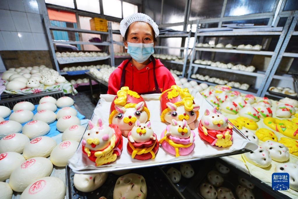山東省青島市城陽(yáng)區(qū)紅島街道觀濤社區(qū)的居民在制作傳統(tǒng)花饃,花樣別致的花饃寓意美好生活“蒸蒸日上”(1月17日攝)。新華社發(fā)(王海濱 攝)