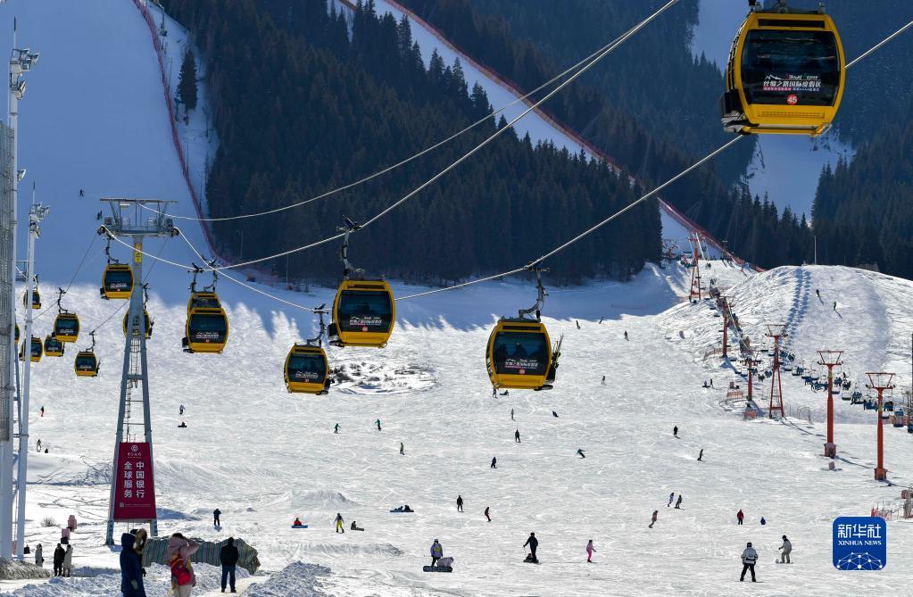 天空湛藍(lán)清澈,大地銀裝素裹……在新疆阿勒泰地區(qū)的雪道上,游客王先生和家人在冰雪世界中盡情馳騁。