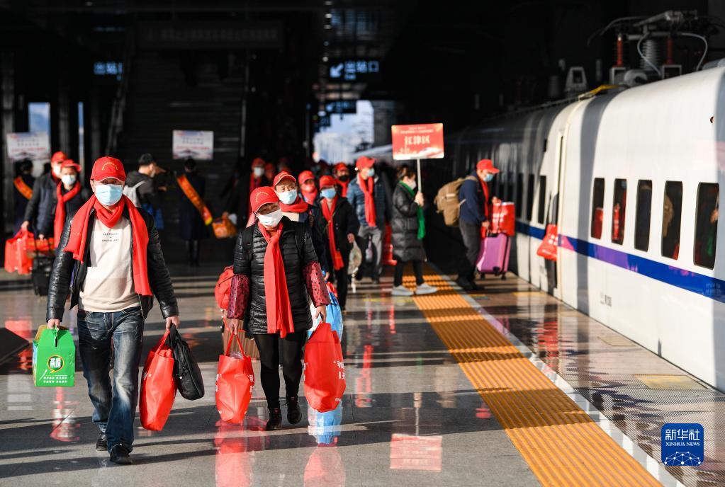 “第一次坐‘務(wù)工專列’去上班,很開心。我們只申報了相關(guān)信息,其他都由政府幫助,包括上門接送、免費訂票等。”拎著行李、戴著口罩,重慶永川區(qū)板橋鎮(zhèn)村民夏前奎腳步輕快。