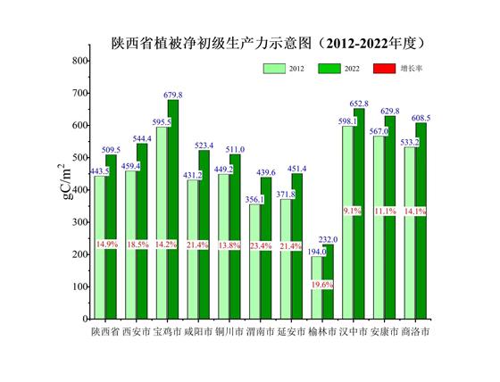 陜西省是中國版圖原點、腹心所在,堪稱中華家園中的內(nèi)園、核心園,自然生態(tài)空間遭受經(jīng)濟社會發(fā)展侵入的時間久、強度大。曾經(jīng)最精美的生態(tài)空間已開辟為現(xiàn)在的城鎮(zhèn)、鄉(xiāng)村,有幸保留下來的生態(tài)空間也已歷經(jīng)掏挖劫掠、生態(tài)系統(tǒng)功能遭受重創(chuàng)。進入新時代,在綠水青山就是金山銀山理念引導(dǎo)下,生態(tài)空間發(fā)生了廣泛而深刻的綠色革命,促進了生態(tài)生產(chǎn)力持續(xù)增長。陜西省生態(tài)空間數(shù)據(jù)中心演算結(jié)果顯示,2022年全省生態(tài)空間植被凈初級生產(chǎn)力水平為339.7公斤/畝,比2012年的295.7公斤/畝增加44公斤/畝,增長14.9%。全省生態(tài)空間植被凈初級生產(chǎn)量由2012年的6701.1萬噸增加到7697.5萬噸,增加996.4萬噸,增長14.9%。