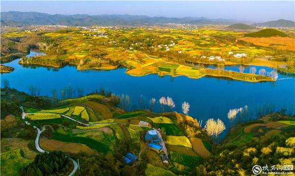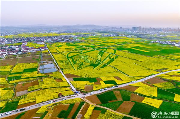 漢中:空中俯瞰油菜花海 春意盎然宛如畫卷
