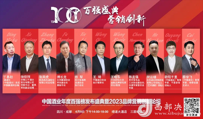 西部決策網(wǎng)訊(記者劉玉 韓宗憲)聚焦中國(guó)酒業(yè)百?gòu)?qiáng)群英,助力品牌營(yíng)銷創(chuàng)新管理。4月9日,中國(guó)酒業(yè)年度百?gòu)?qiáng)榜發(fā)布盛典暨2023品牌營(yíng)銷創(chuàng)新論壇在成都盛大開(kāi)啟。行業(yè)各協(xié)會(huì)領(lǐng)導(dǎo)、智庫(kù)專家、意見(jiàn)領(lǐng)袖及全國(guó)200家企業(yè)和經(jīng)銷商代表,共同見(jiàn)證行業(yè)百?gòu)?qiáng)與酒業(yè)營(yíng)銷人的風(fēng)采。