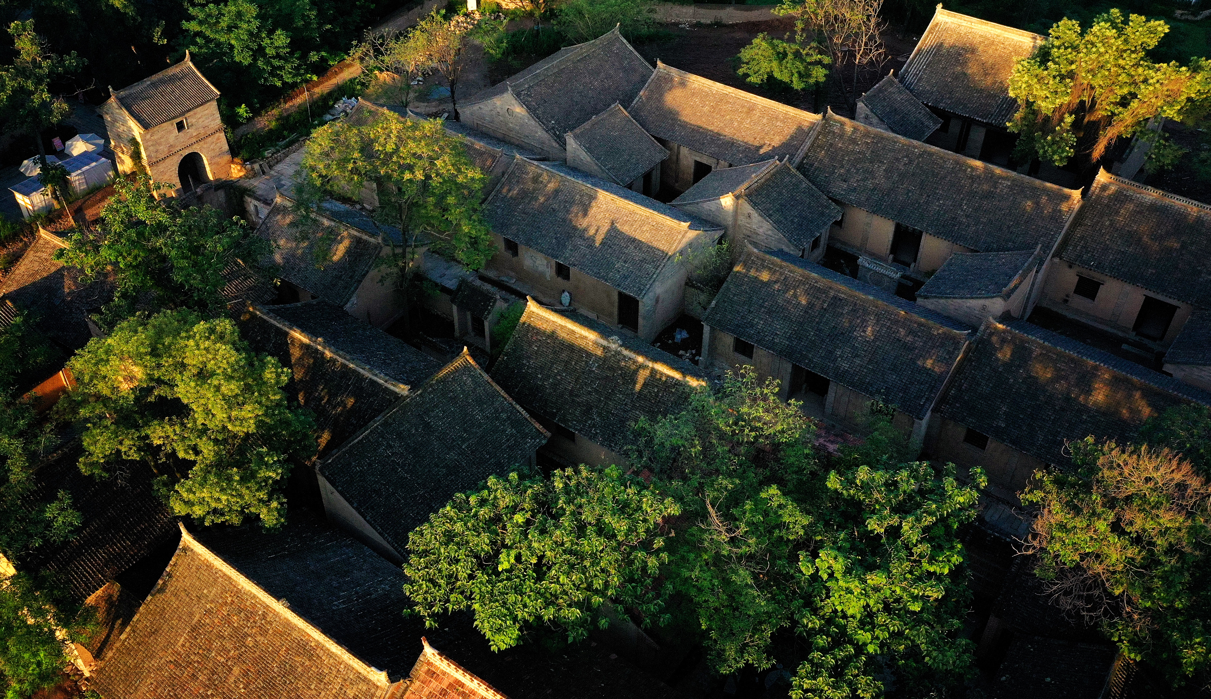 2022年7月24日,長(zhǎng)安唐村內(nèi)正在進(jìn)行修復(fù)的關(guān)中民居(無人機(jī)照片)。新華社記者 劉瀟 攝