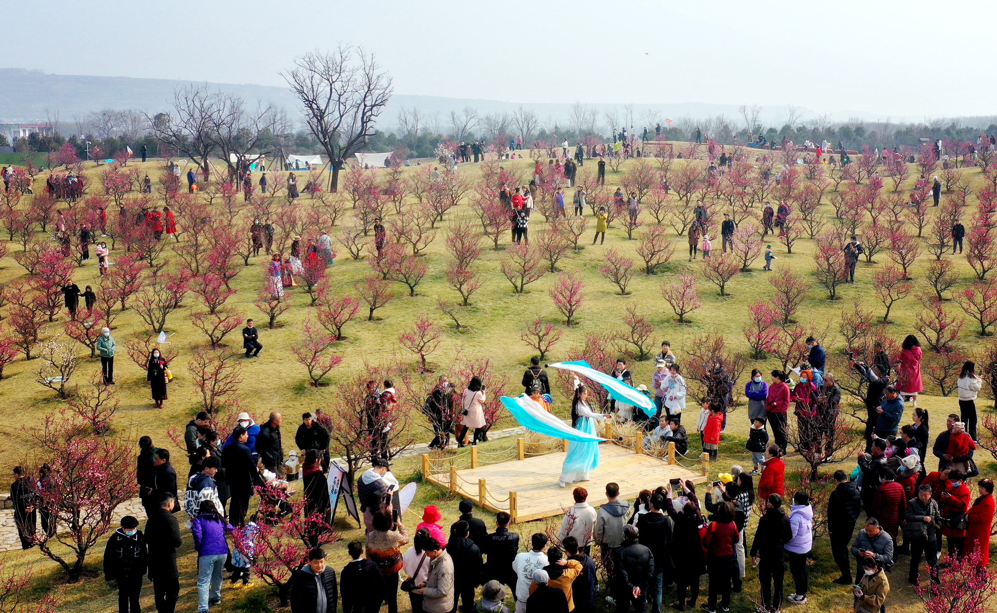2月26日,游人在長(zhǎng)安唐村梅園內(nèi)賞梅(無人機(jī)照片)。新華社記者 劉瀟 攝