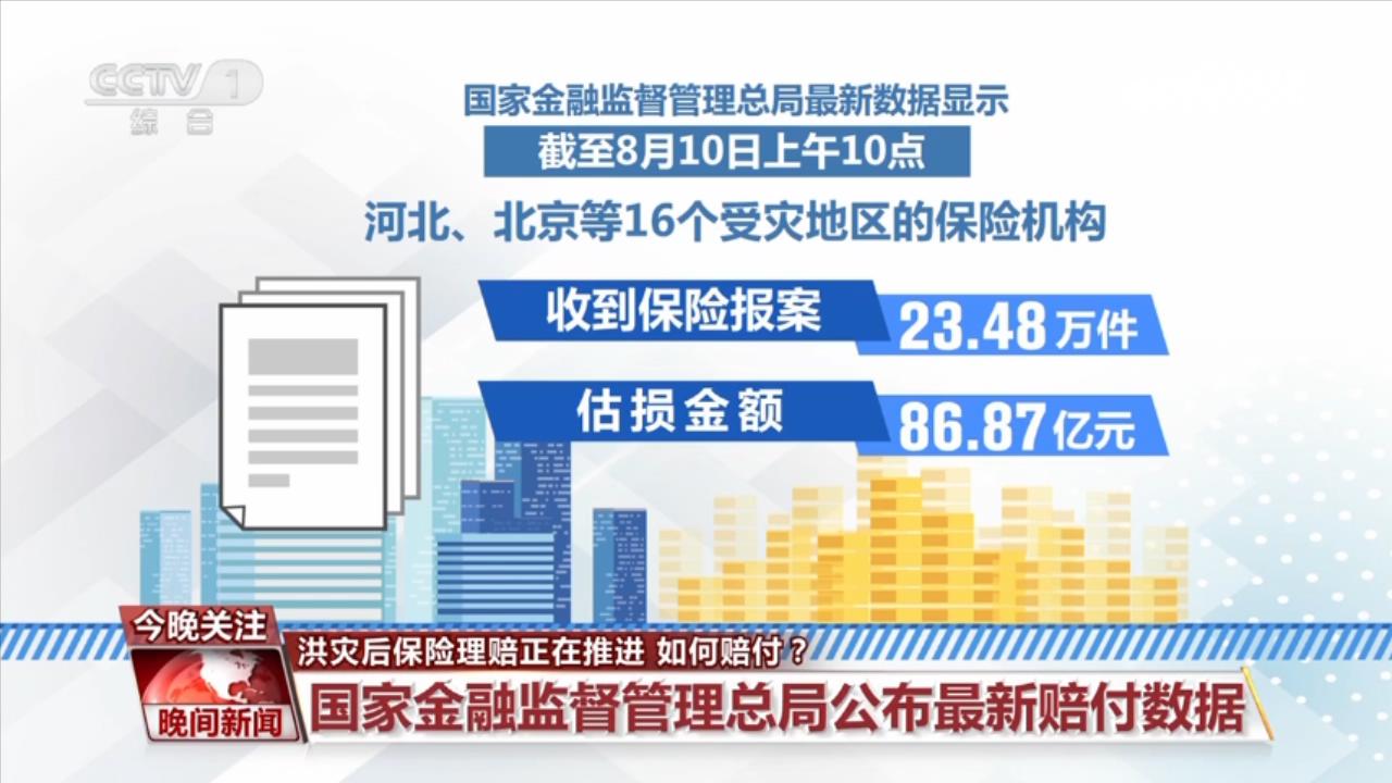 國家金融監(jiān)督管理總局最新數(shù)據(jù)顯示,截至8月10日上午10時(shí),河北、北京等16個(gè)受災(zāi)地區(qū)的保險(xiǎn)機(jī)構(gòu)收到保險(xiǎn)報(bào)案23.48萬件,估損金額86.87億元;目前已賠付案件9.23萬件,賠付金額8.31億元。