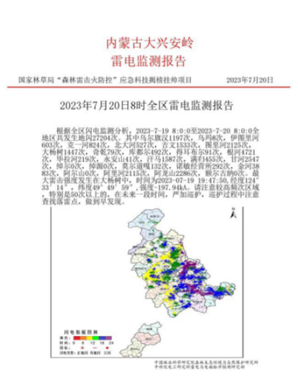 內(nèi)蒙古大興安嶺雷電活動(dòng)(7月20日?qǐng)?bào)告)