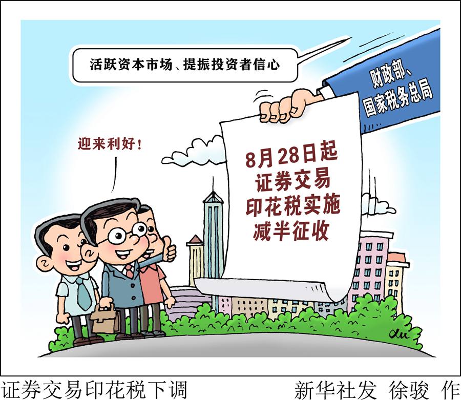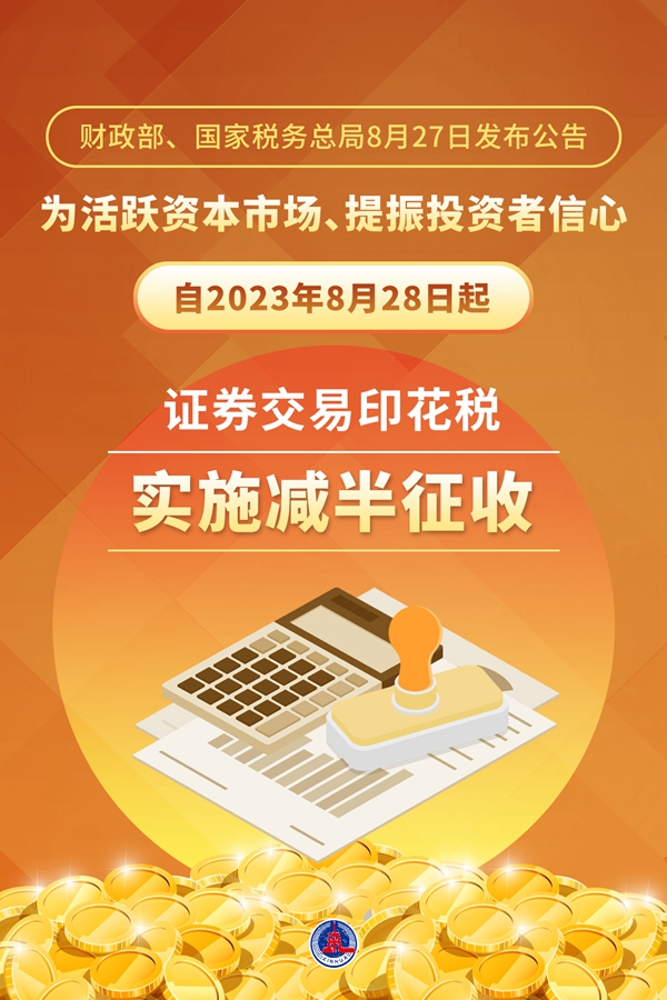 新華社北京8月27日電 記者27日從財政部了解到,財政部、國家稅務總局當日發(fā)布公告稱,為活躍資本市場、提振投資者信心,自2023年8月28日起,證券交易印花稅實施減半征收。
