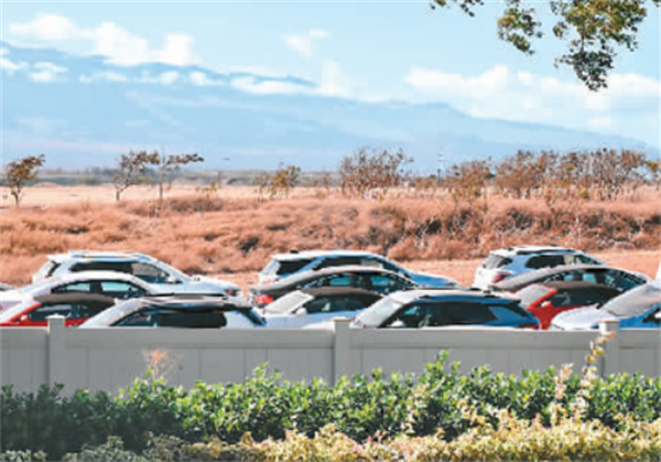 8月25日,美國(guó)夏威夷毛伊島最大機(jī)場(chǎng)卡胡盧伊機(jī)場(chǎng)外一片空地上,租車公司的上百輛汽車靜靜地閑置在那里,無(wú)人問(wèn)津。