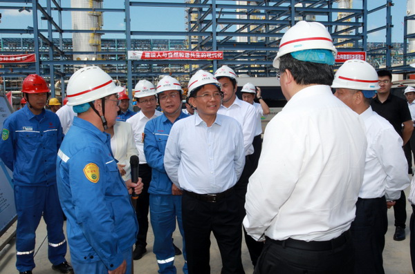 29日上午,孫金龍一行前往山東裕龍石化產業(yè)園,調研裕龍島煉化一體化項目。該項目位于煙臺市所轄龍口市,是山東省新舊動能轉換、現(xiàn)有地煉產能供給側改革升級的重點項目,規(guī)劃產能4000萬噸/年。孫金龍觀看了項目建設紀實片并參觀了裕龍石化展廳,聽取了項目有關介紹,隨后前往3號島和2號島實地查看一期建設情況,現(xiàn)場考察項目實施、設備工藝、環(huán)境安全等情況,仔細詢問污染物排放情況和廢水、廢氣及危險廢物處置措施。他強調,推動發(fā)展方式綠色低碳轉型,產業(yè)綠色轉型升級是重點和關鍵。要健全生態(tài)環(huán)境法規(guī)政策標準,強化生態(tài)環(huán)境準入管理,加快促進產業(yè)結構調整優(yōu)化,通過高水平保護不斷塑造發(fā)展的新動能、新優(yōu)勢。要指導支持企業(yè)開展綠色低碳技術改造,嚴格落實環(huán)評審批要求和相關環(huán)保標準措施,確保環(huán)保設施建設到位、規(guī)范運行和達標排放,切實做好環(huán)境風險防范處置工作。