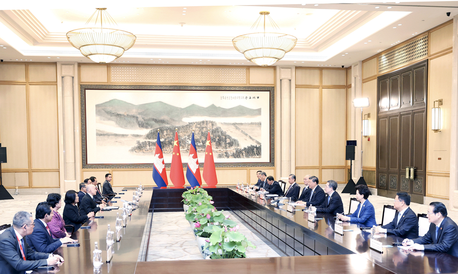 習(xí)近平強(qiáng)調(diào),今年是我提出親誠惠容理念10周年。中柬關(guān)系集中體現(xiàn)了這一理念以及中國堅(jiān)持與鄰為善、以鄰為伴的周邊外交方針。中國支持柬埔寨走符合本國國情的發(fā)展道路,支持柬埔寨實(shí)現(xiàn)穩(wěn)定和發(fā)展,支持柬埔寨在國際和地區(qū)舞臺發(fā)揮重要作用。雙方要保持高層交往,深化互利合作,扎實(shí)推進(jìn)“鉆石六邊”合作架構(gòu),推動“工業(yè)發(fā)展走廊”和“魚米走廊”建設(shè)盡快取得可視成果,服務(wù)各自國家現(xiàn)代化事業(yè)。雙方要持續(xù)推進(jìn)教育、文化、青年等領(lǐng)域交流合作,讓中柬友好更加深入人心。