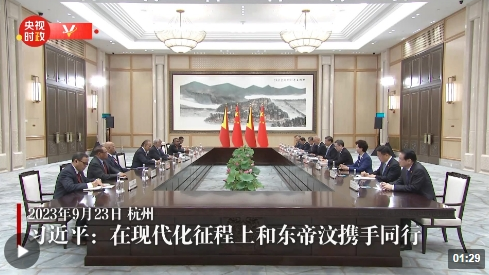 會(huì)貴賓、敘友誼、謀團(tuán)結(jié)、向未來(lái),習(xí)近平主席在亞運(yùn)會(huì)開(kāi)幕日的一系列元首外交活動(dòng),有力詮釋了以體育促和平、以體育促團(tuán)結(jié)、以體育促包容的倡議主張。