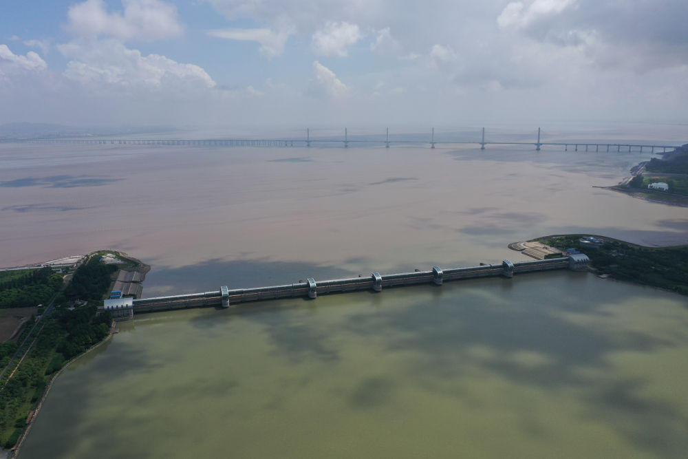 2023年8月4日拍攝的曹娥江大閘(無(wú)人機(jī)照片)。新華社記者 黃宗治 攝